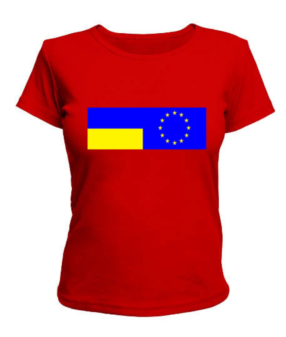 Жіноча футболка Прапор України та Євросоюзу Варіант №2