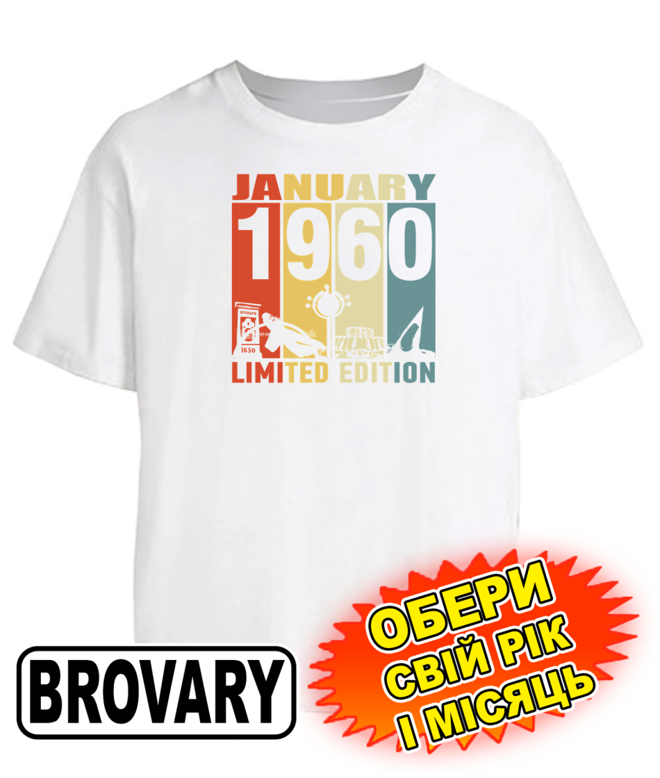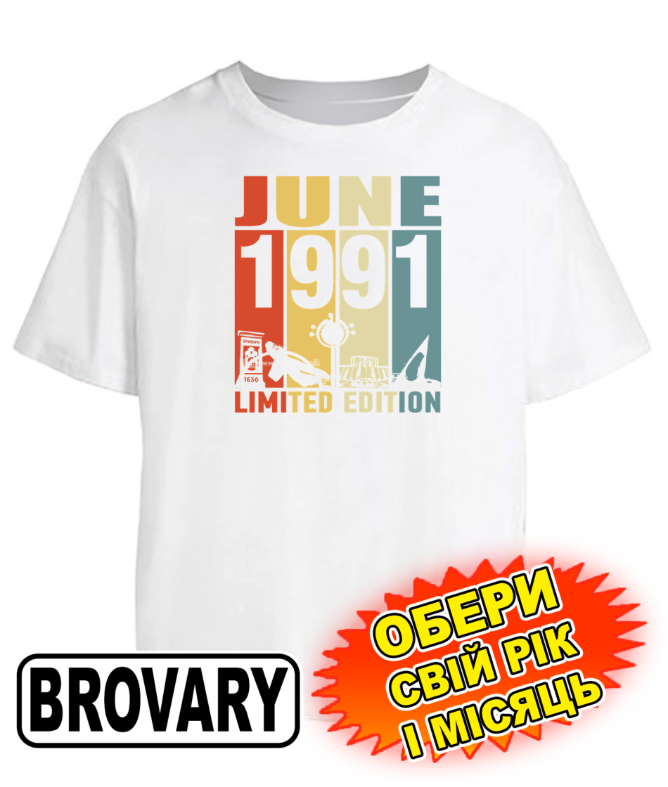 Футболка оверсайз (біла) BROVARY LIMITED EDITION [обери свій місяць та рік]