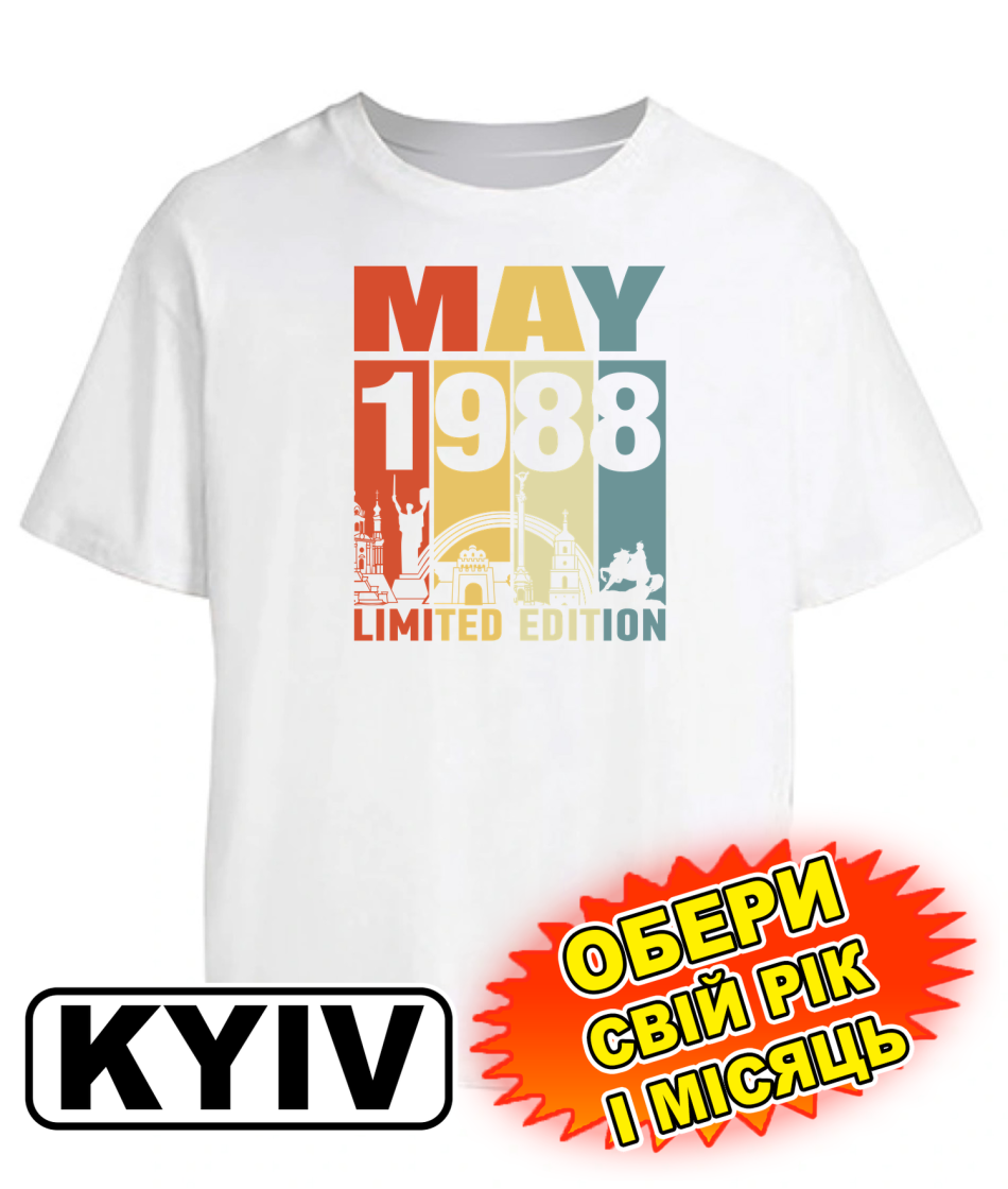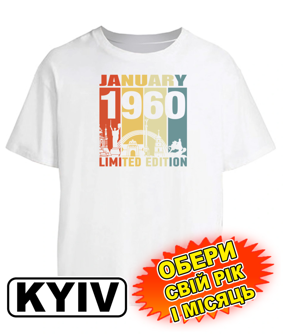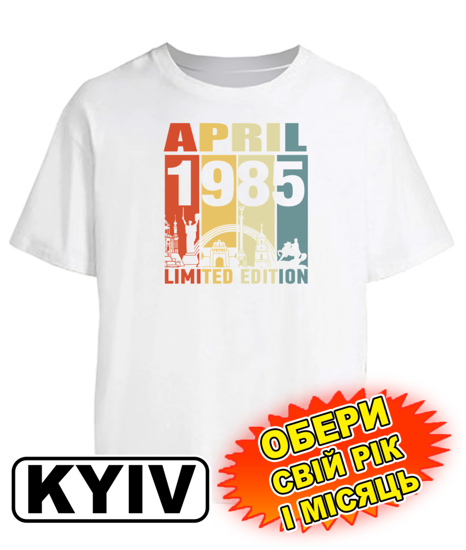 Футболка оверсайз (біла) KYIV LIMITED EDITION [обери свій місяць та рік]