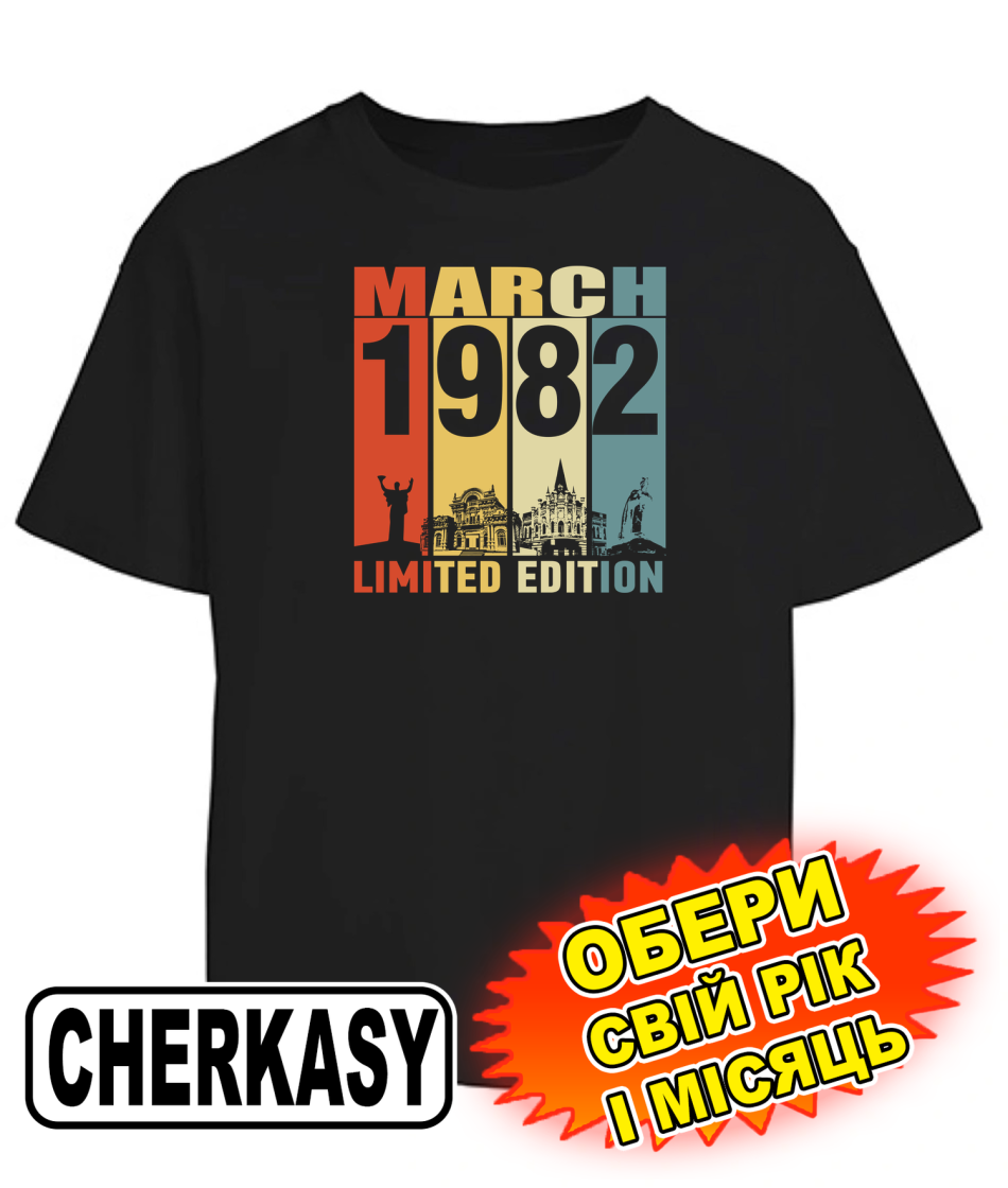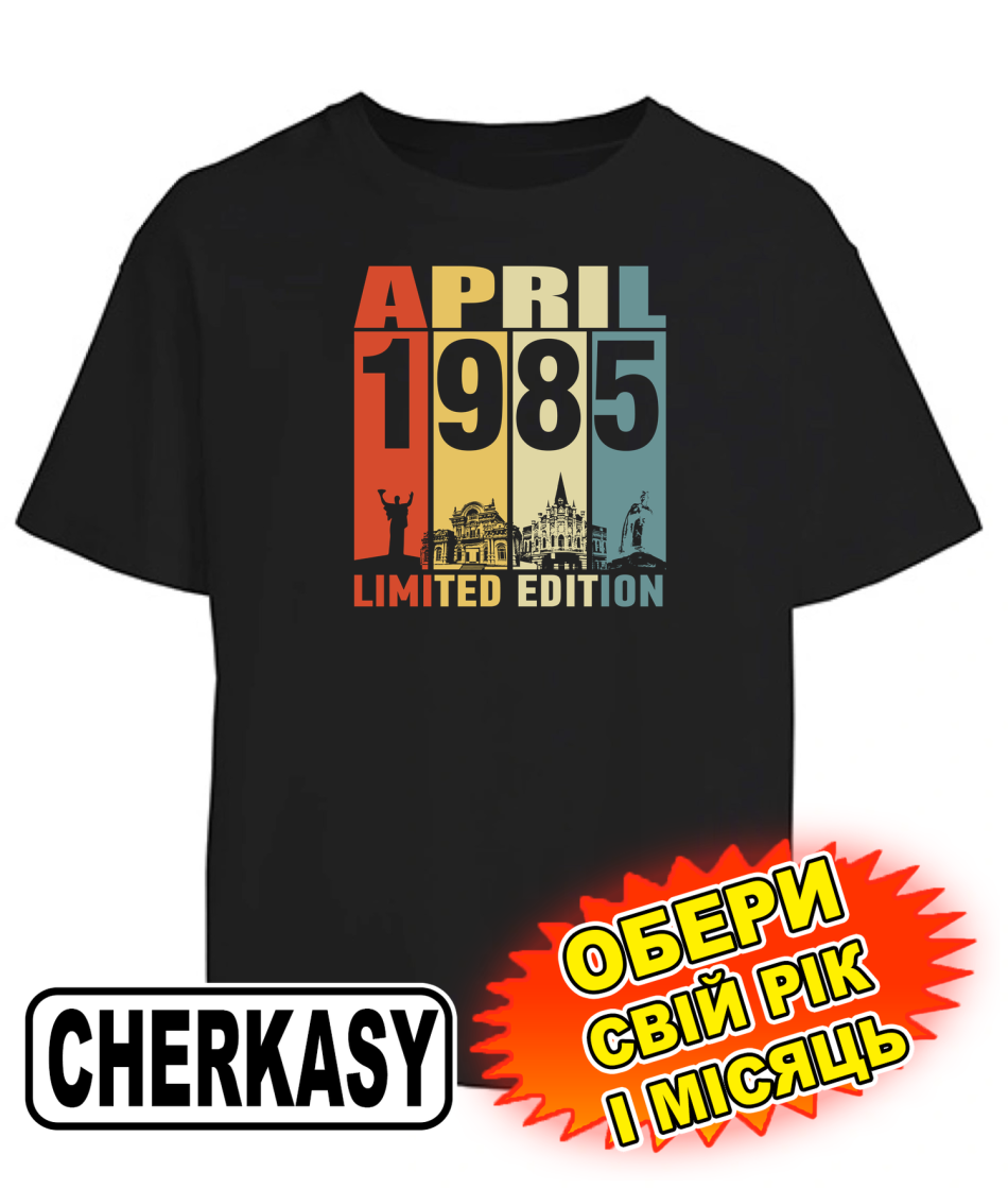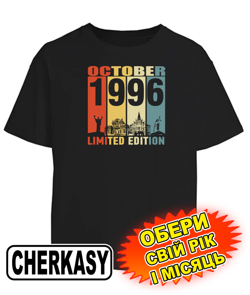 Футболка оверсайз (чорна) CHERKASY LIMITED EDITION [обери свій місяць та рік]