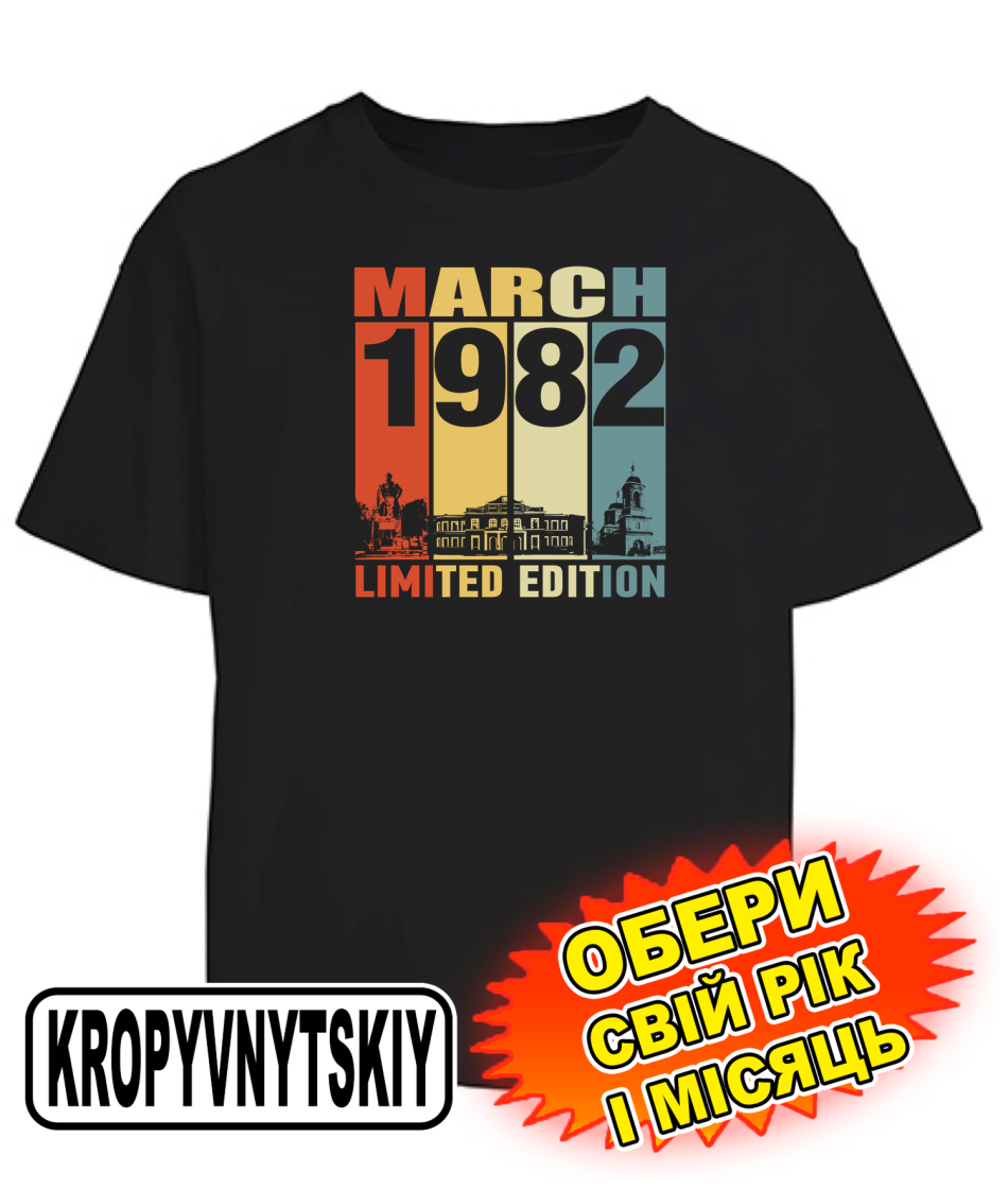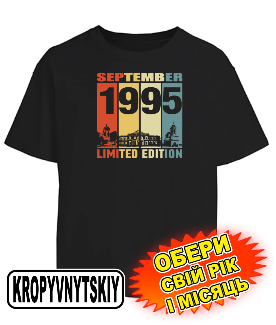 Футболка оверсайз (чорна) KROPYVNYTSKYI LIMITED EDITION [обери свій місяць та рік]
