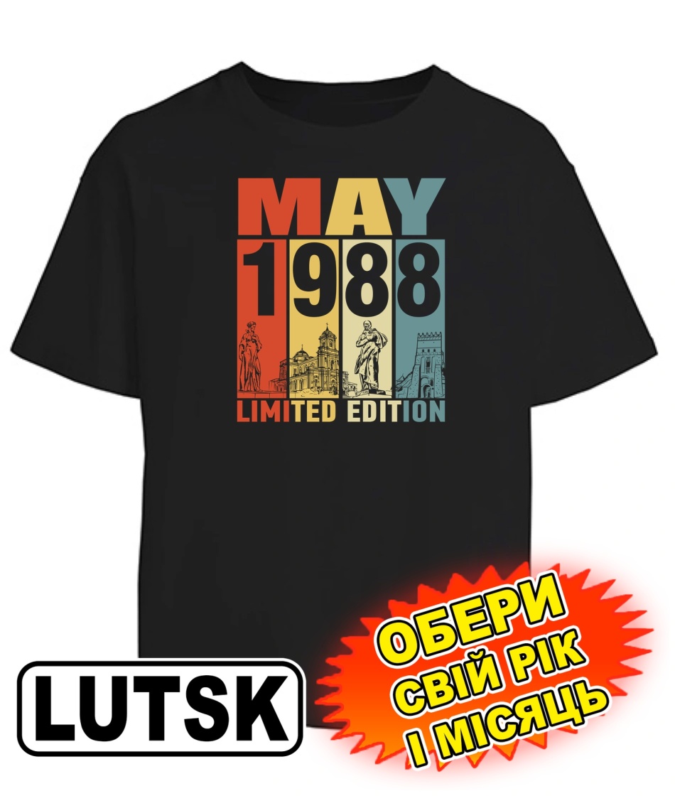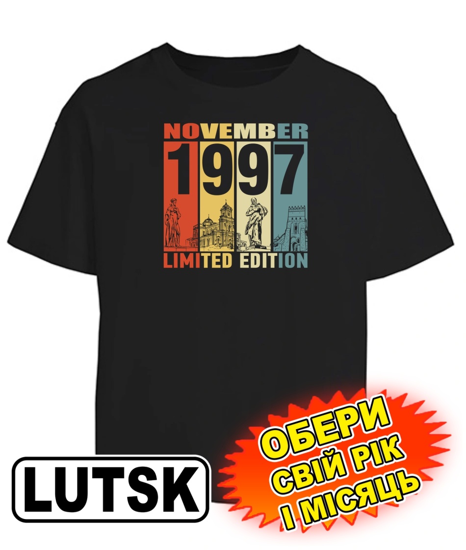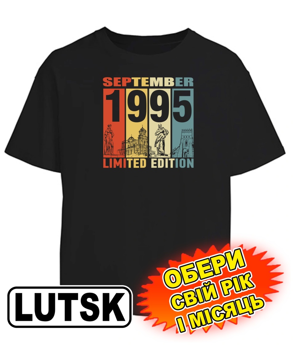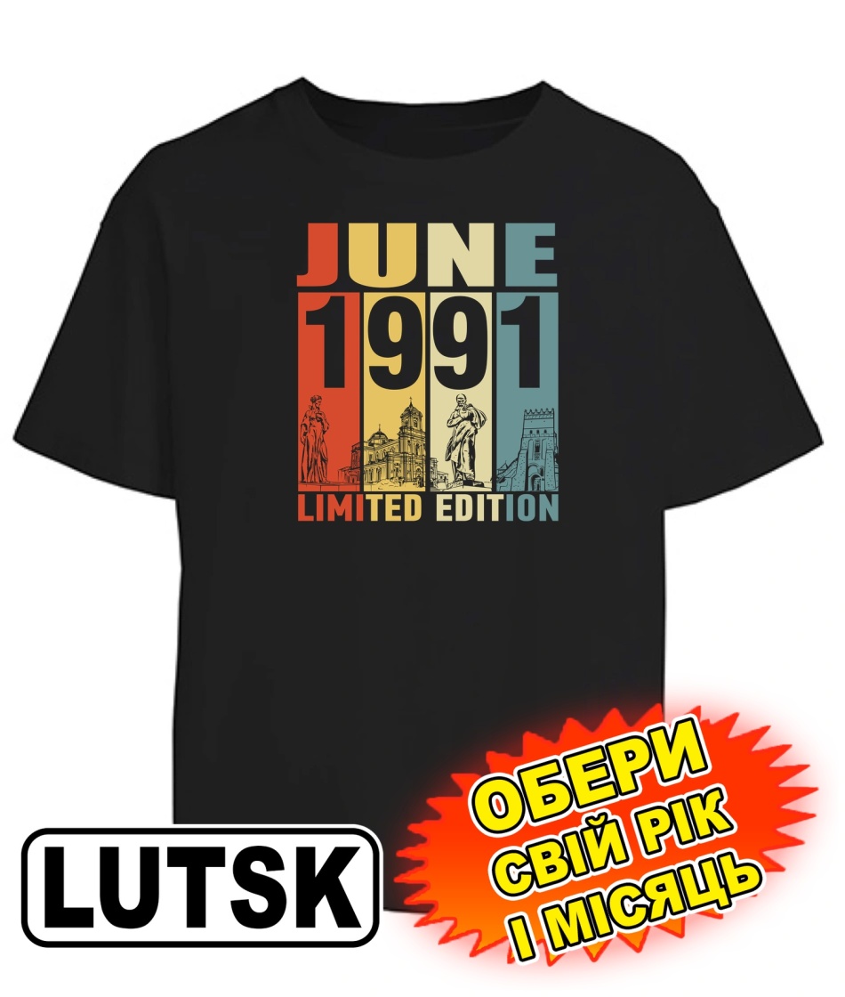 Футболка оверсайз (чорна) LUTSK LIMITED EDITION [обери свій місяць та рік]