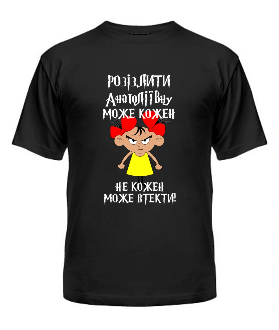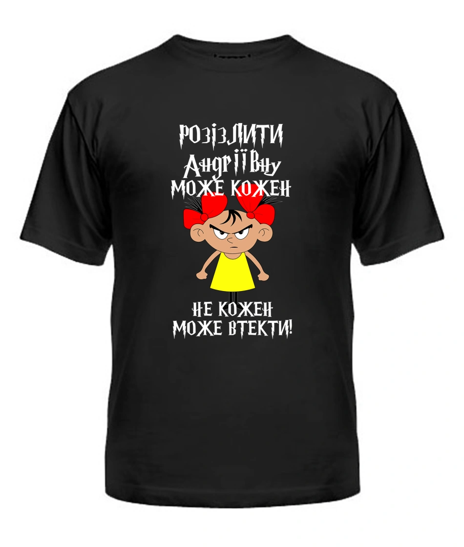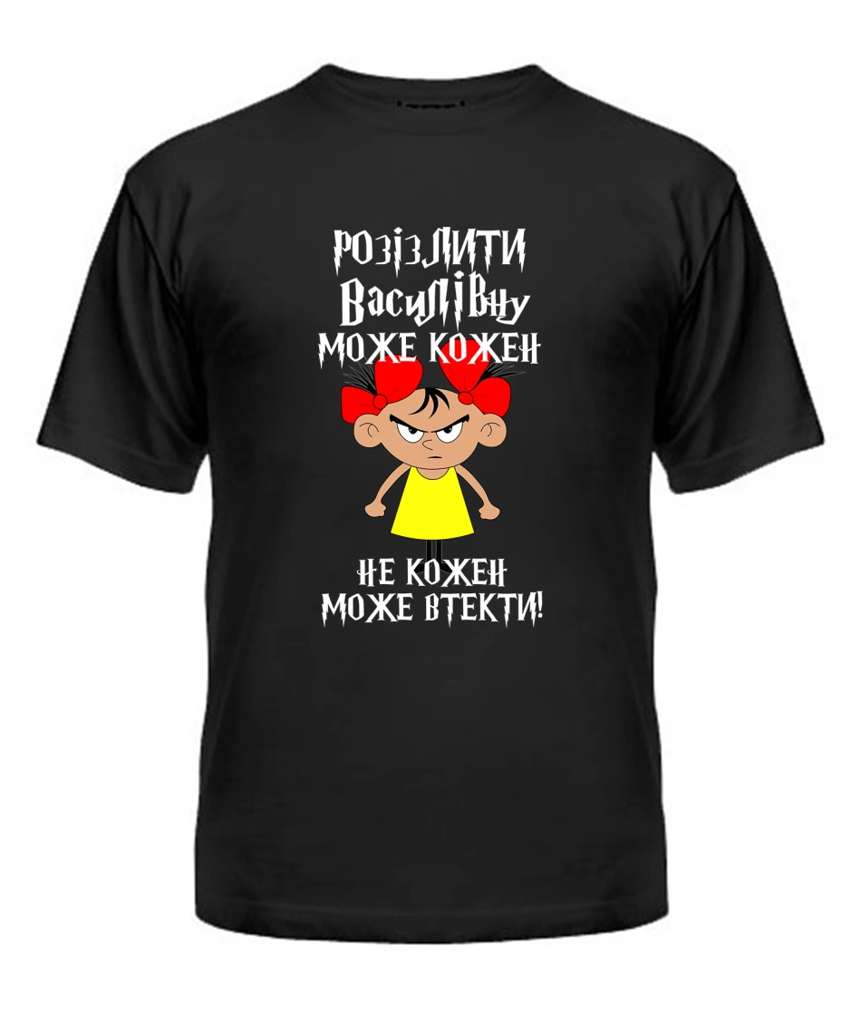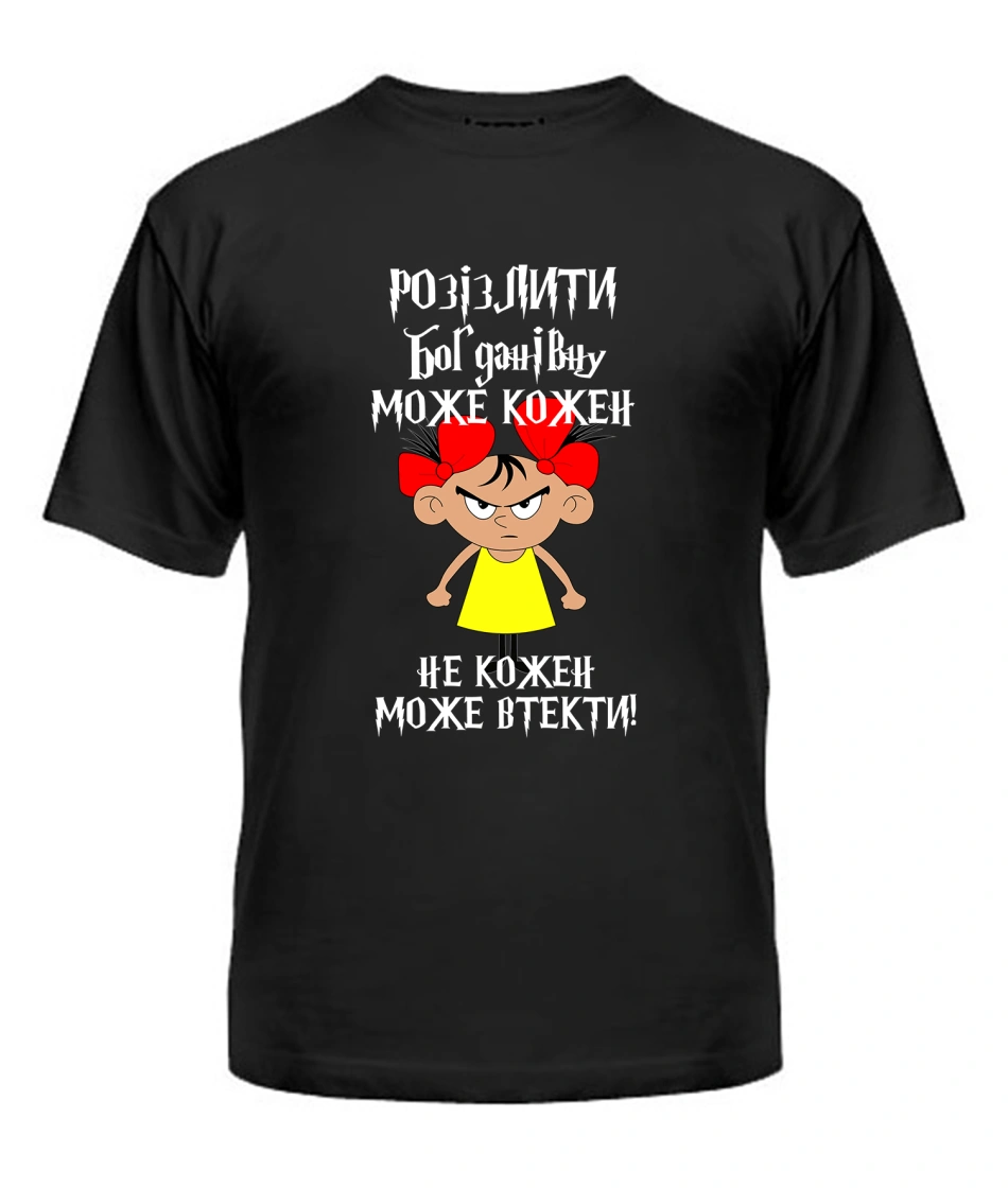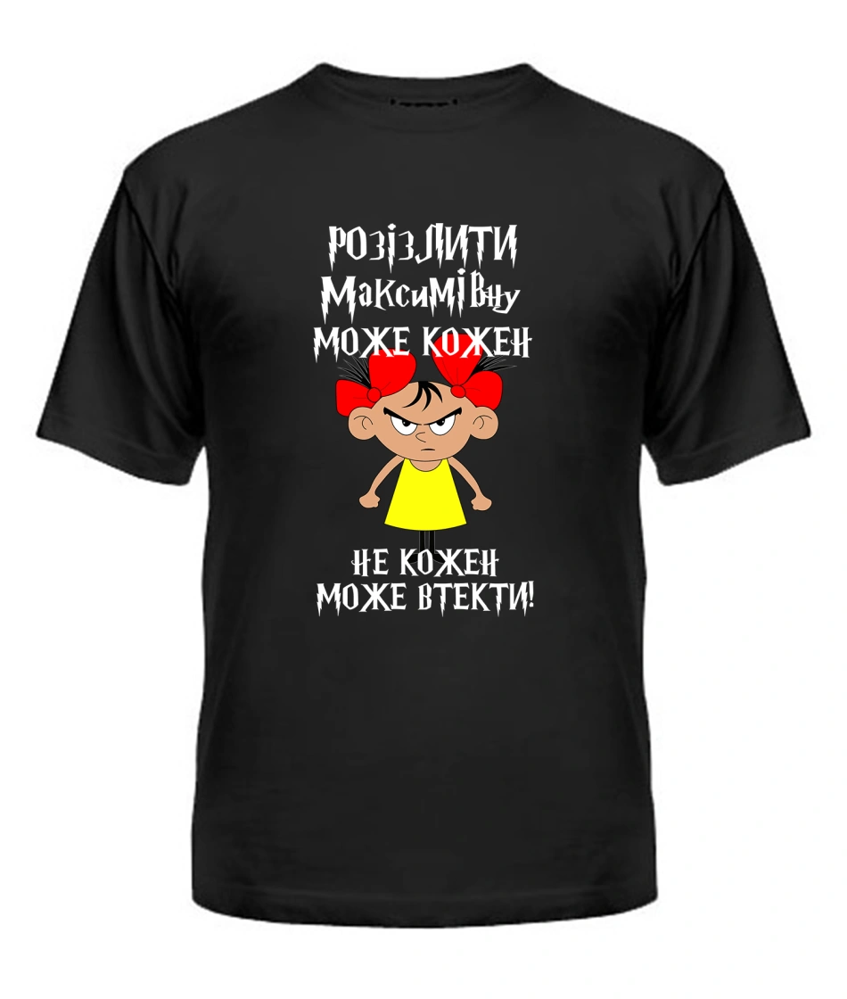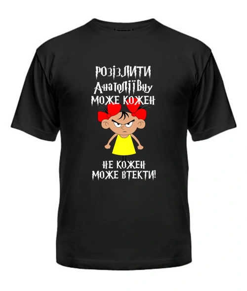 Футболка універсального крою для жінок (чорна) Розізлити може кожен [обери по батькові]