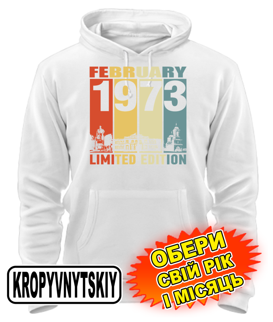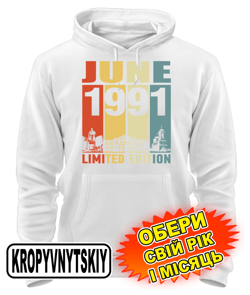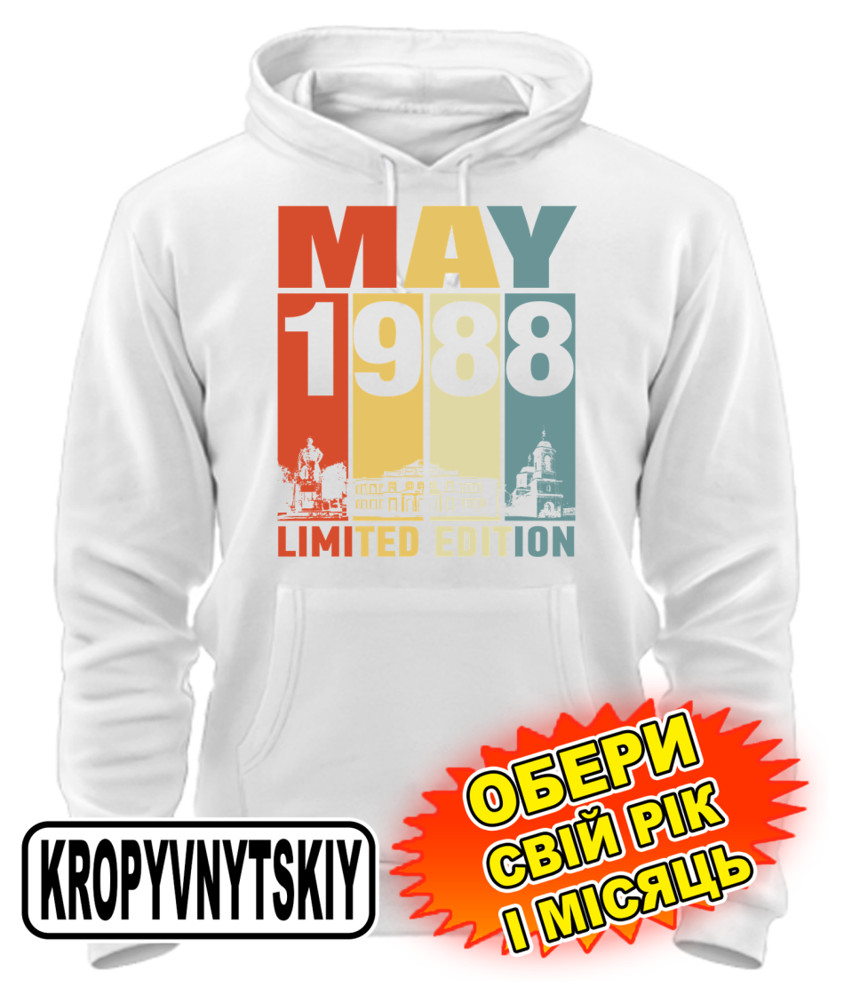 Толстовка-худі (білий) KROPYVNYTSKYI LIMITED EDITION [обери свій місяць і рік]