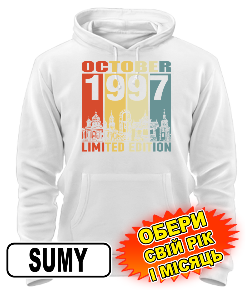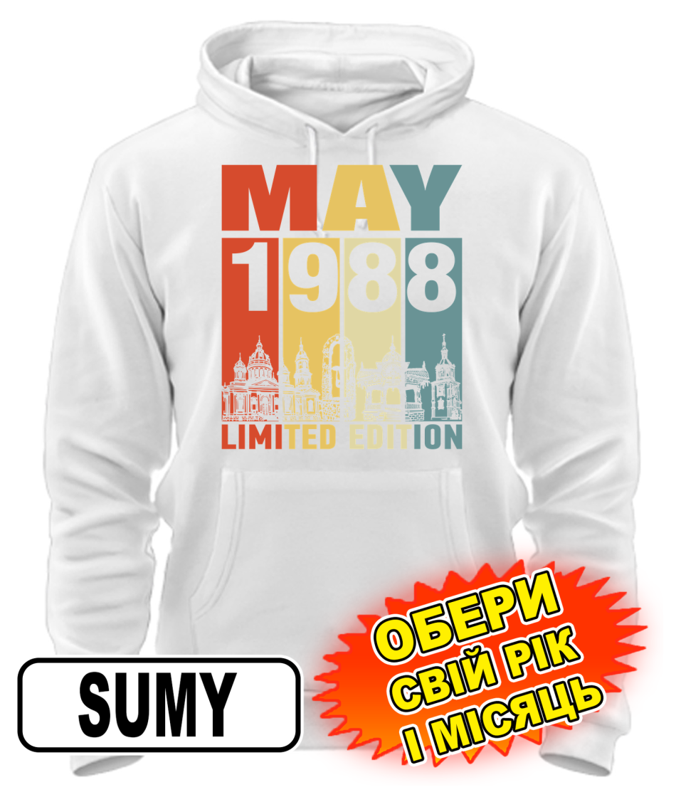 Толстовка-худі (білий) SUMY LIMITED EDITION [обери свій місяць і рік]