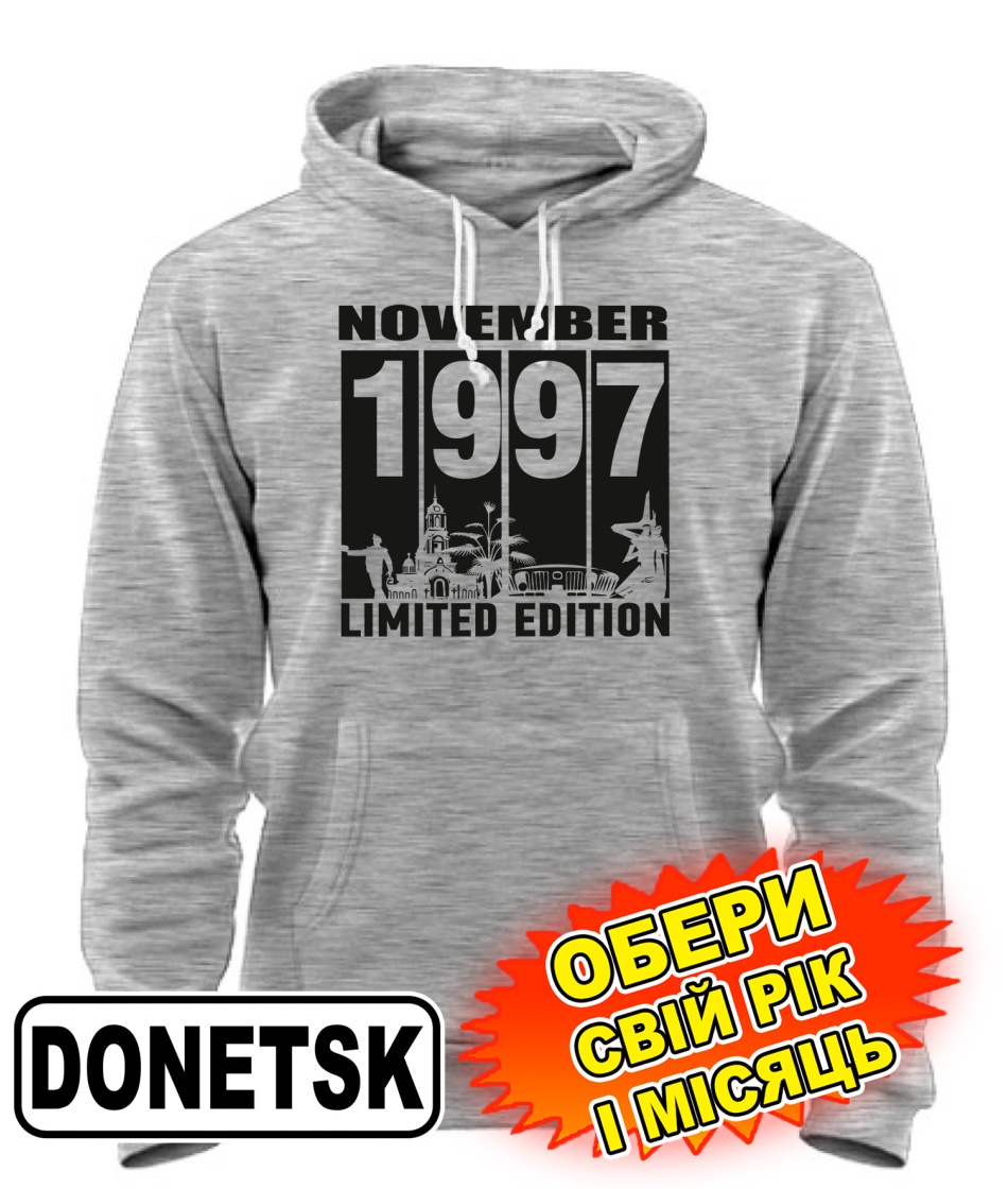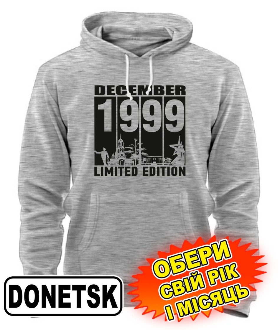 Толстовка-худі (сірий меланж) DONETSK LIMITED EDITION [обери свій місяць і рік]