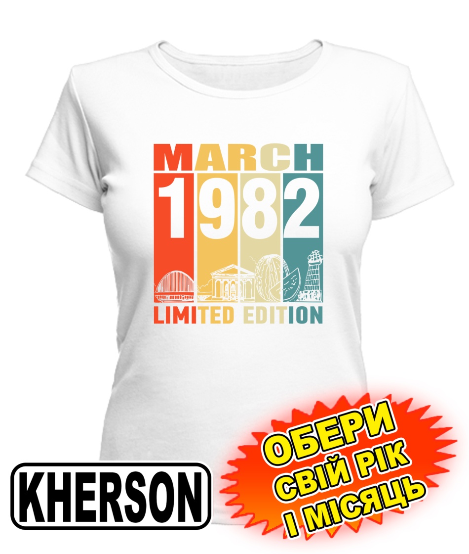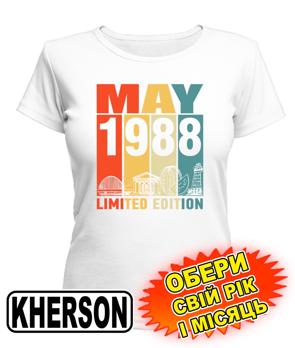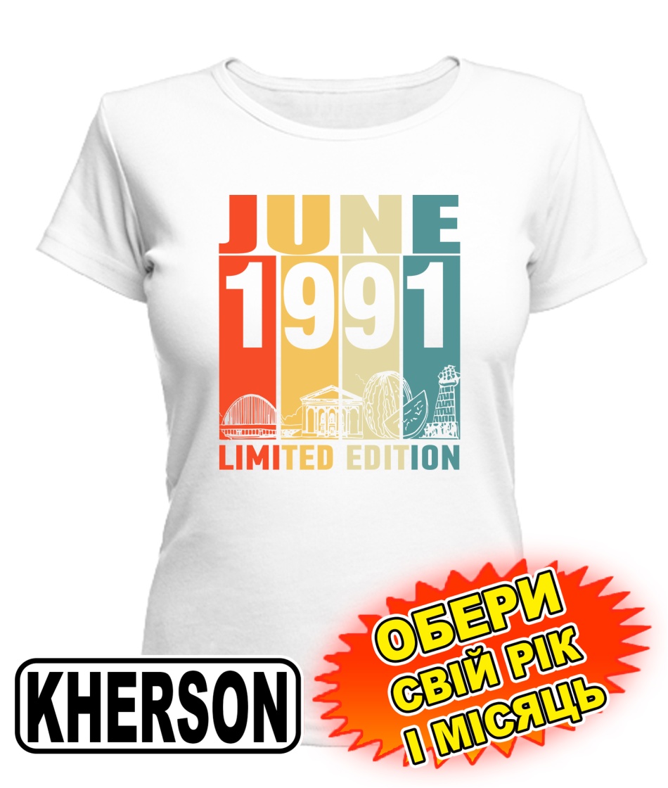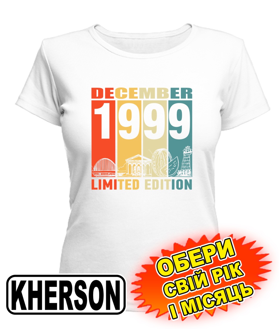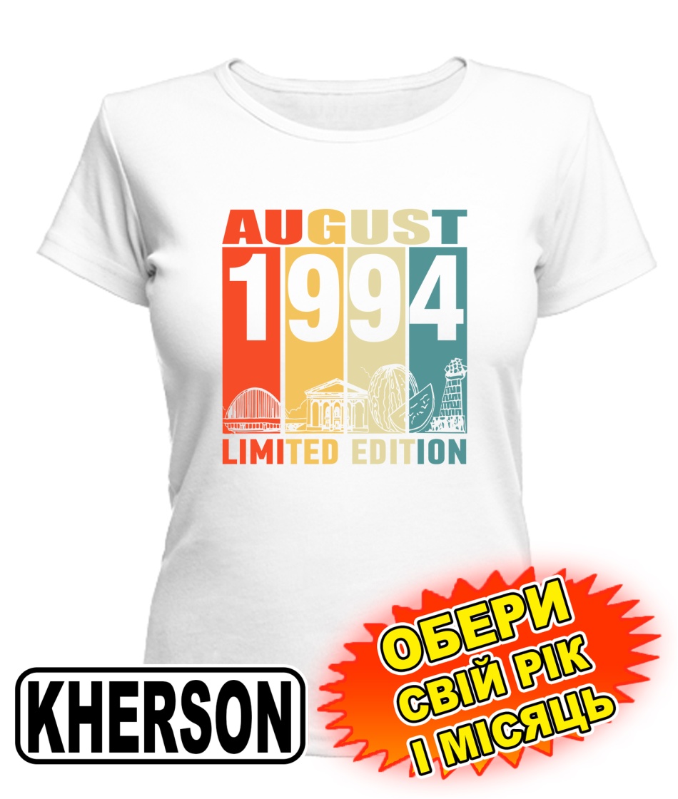 Жіноча Футболка (біла) KHERSON LIMITED EDITION [обери свій місяць і рік]