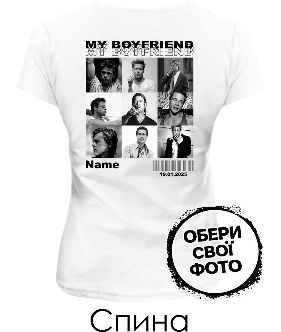 Чоловіча футболка Girlfriend гарно підходить для дівчини з фотографіями її хлопця.