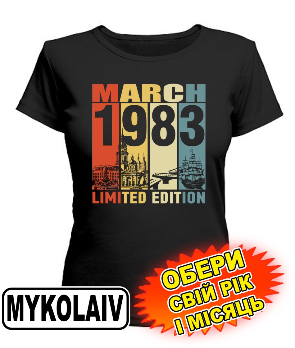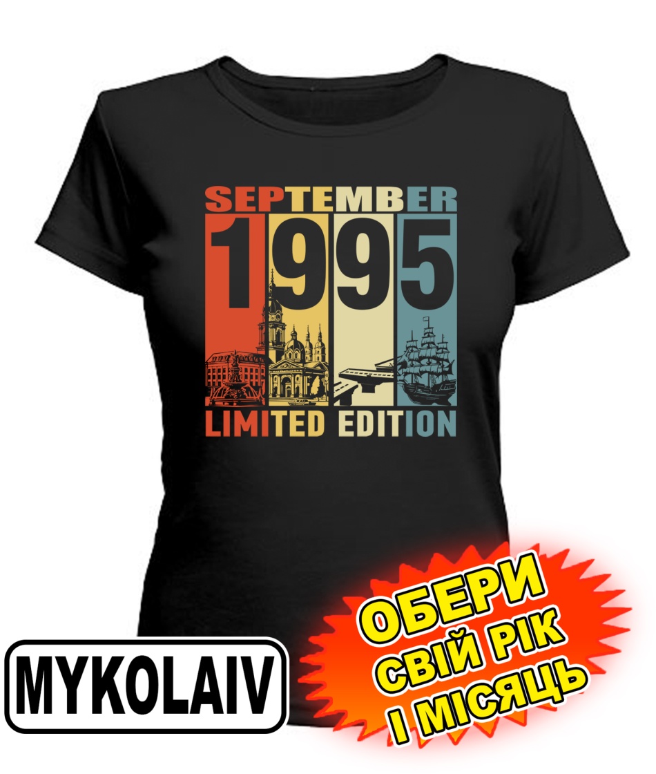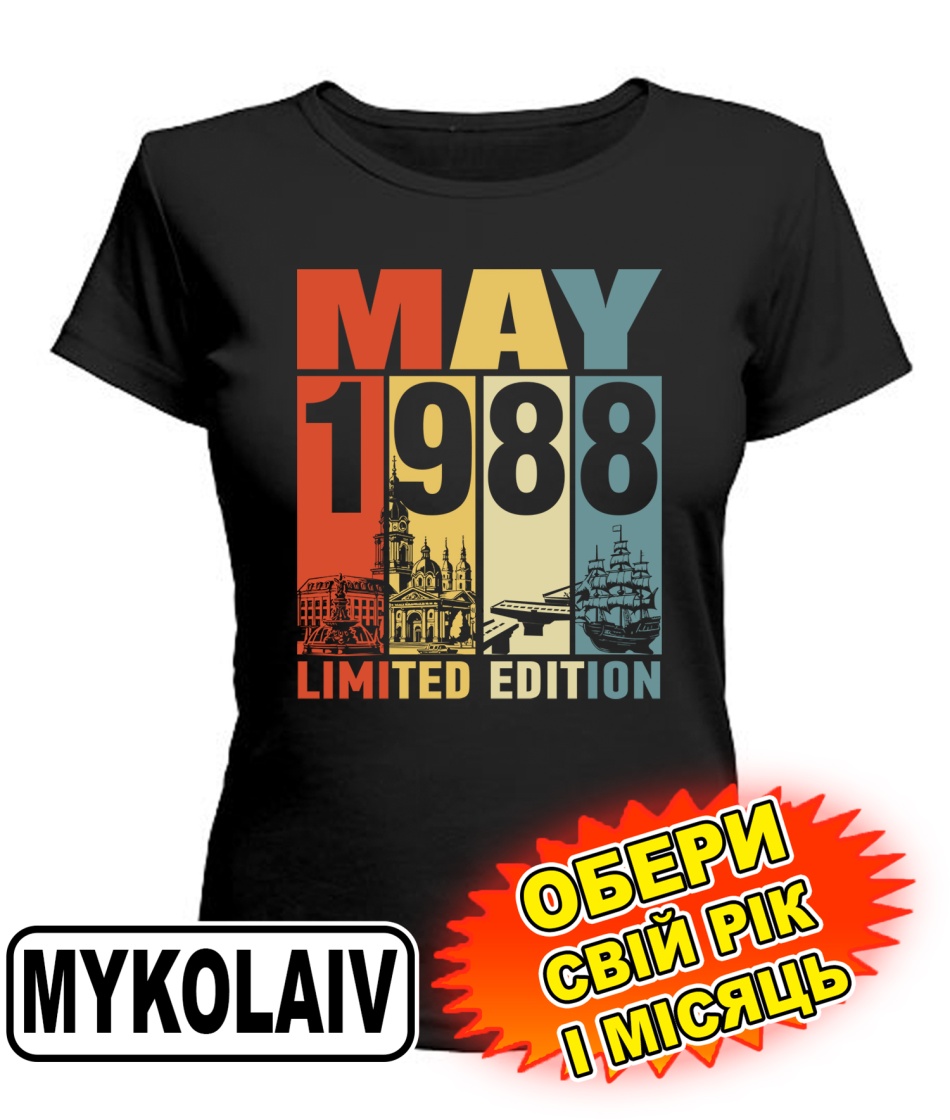 Жіноча Футболка (чорна) MYKOLAYIV LIMITED EDITION [обери свій місяць і рік]