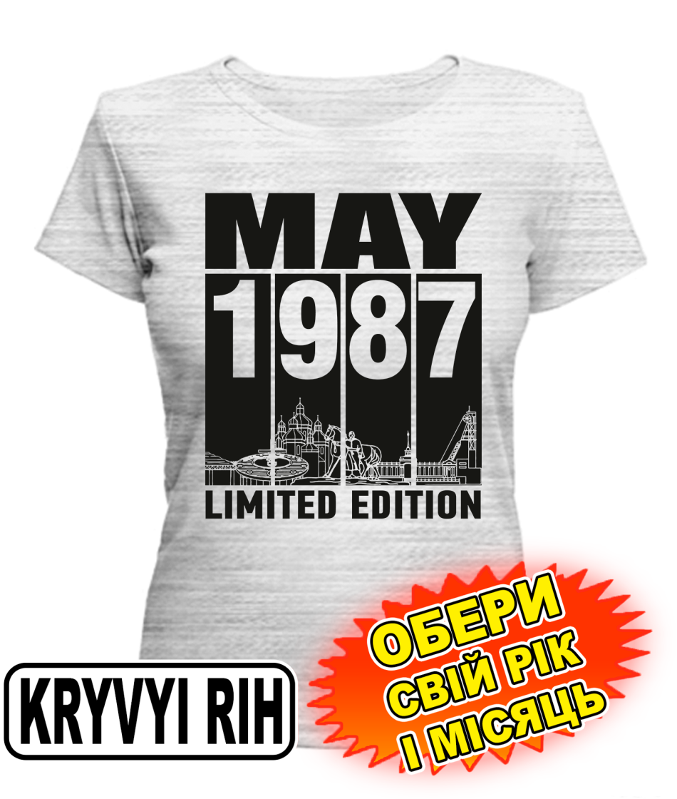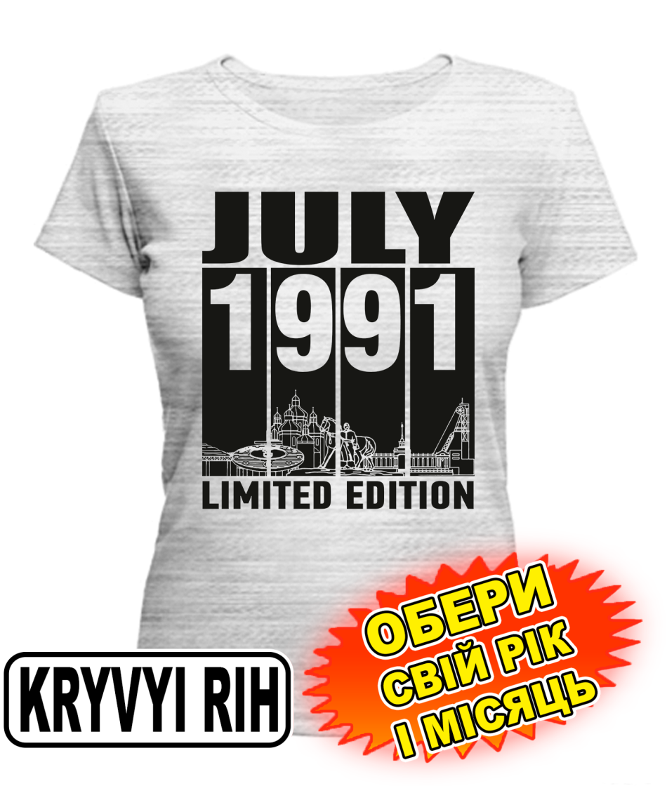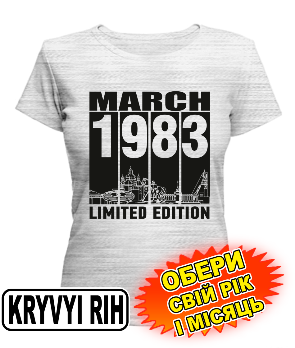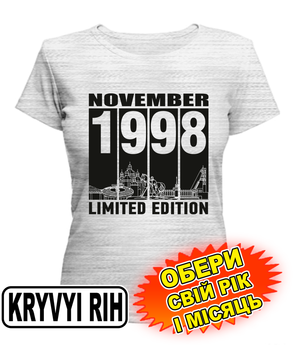 Жіноча Футболка (сірий меланж) KRYVYI RIH LIMITED EDITION [обери свій місяць і рік]