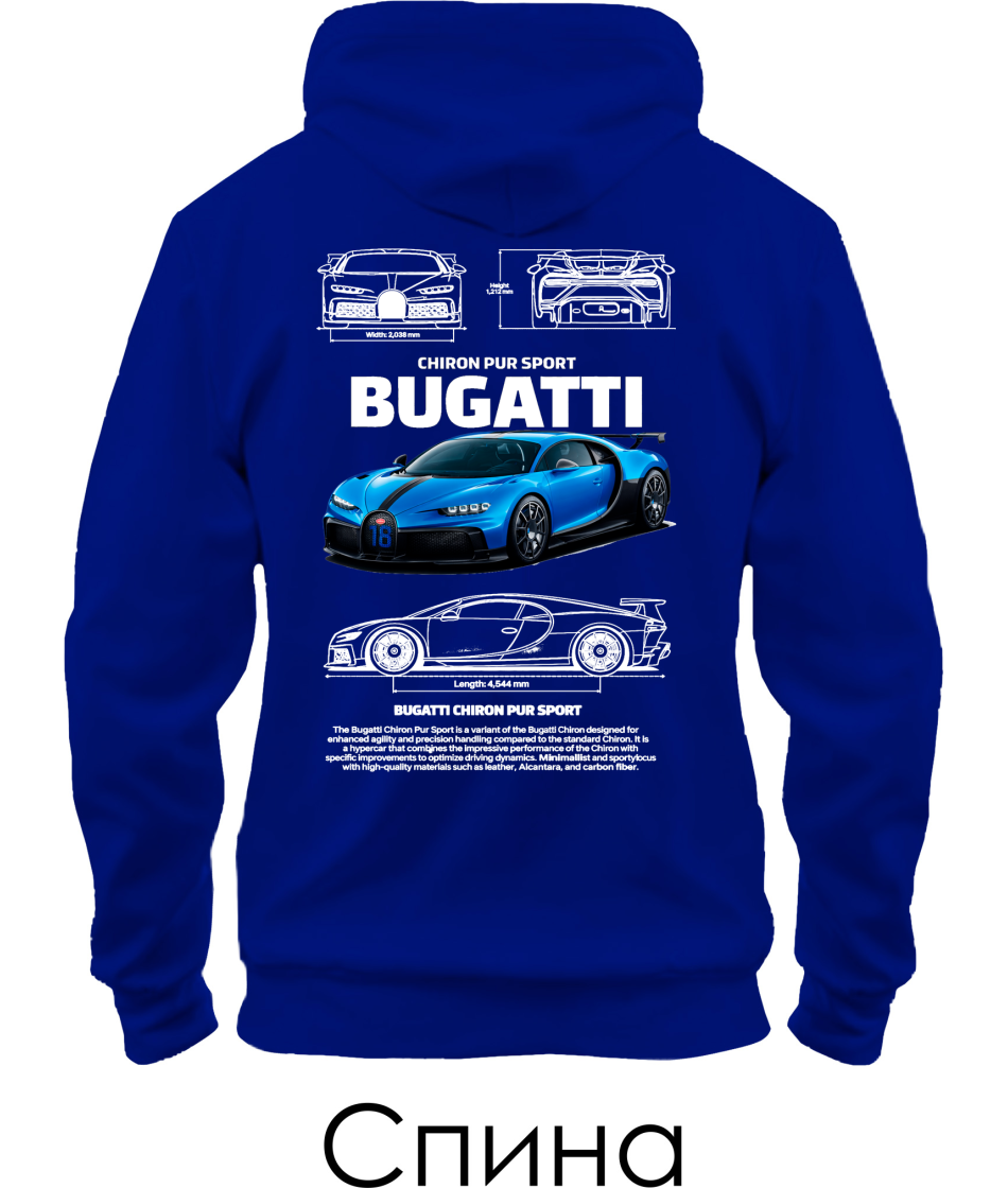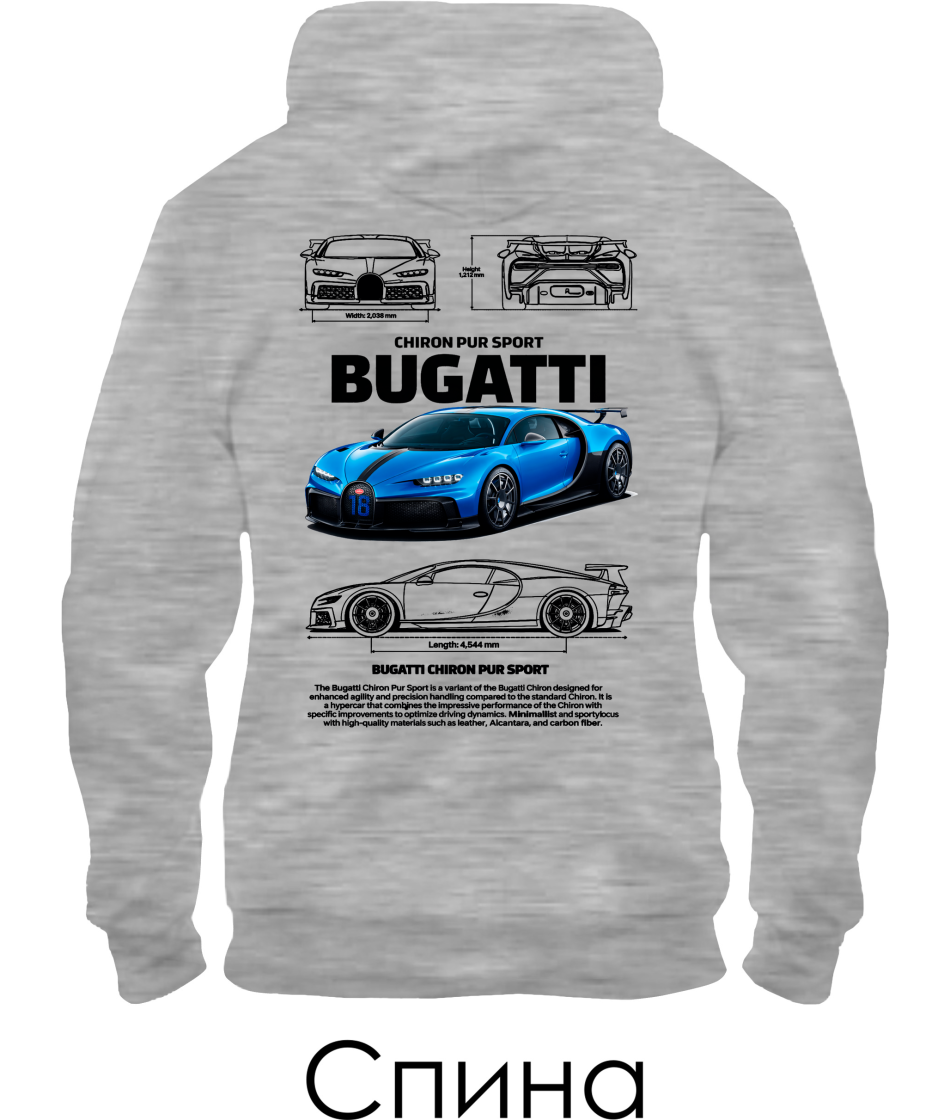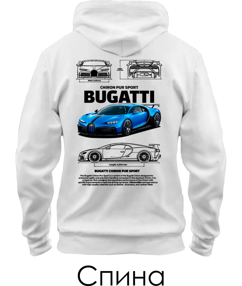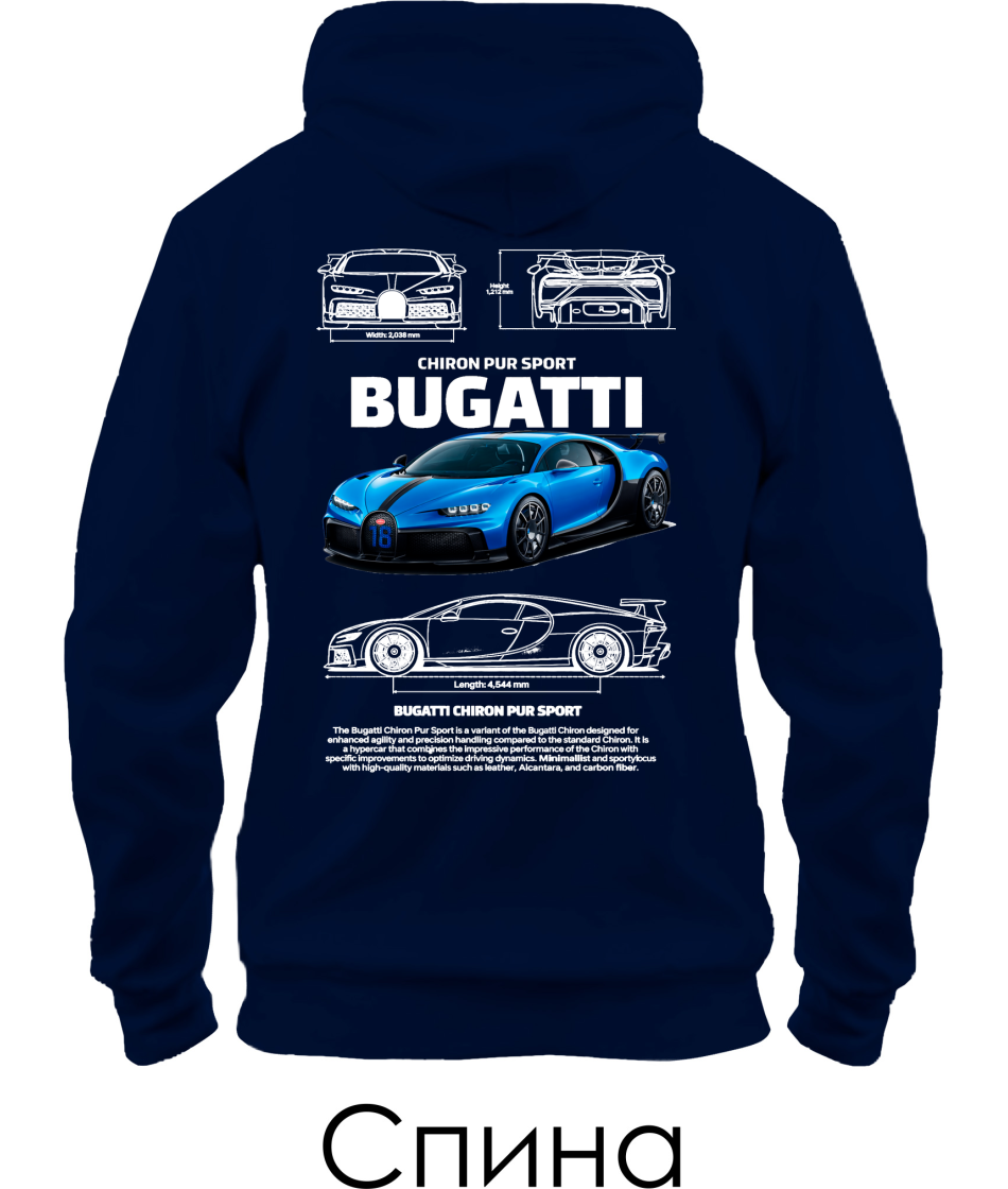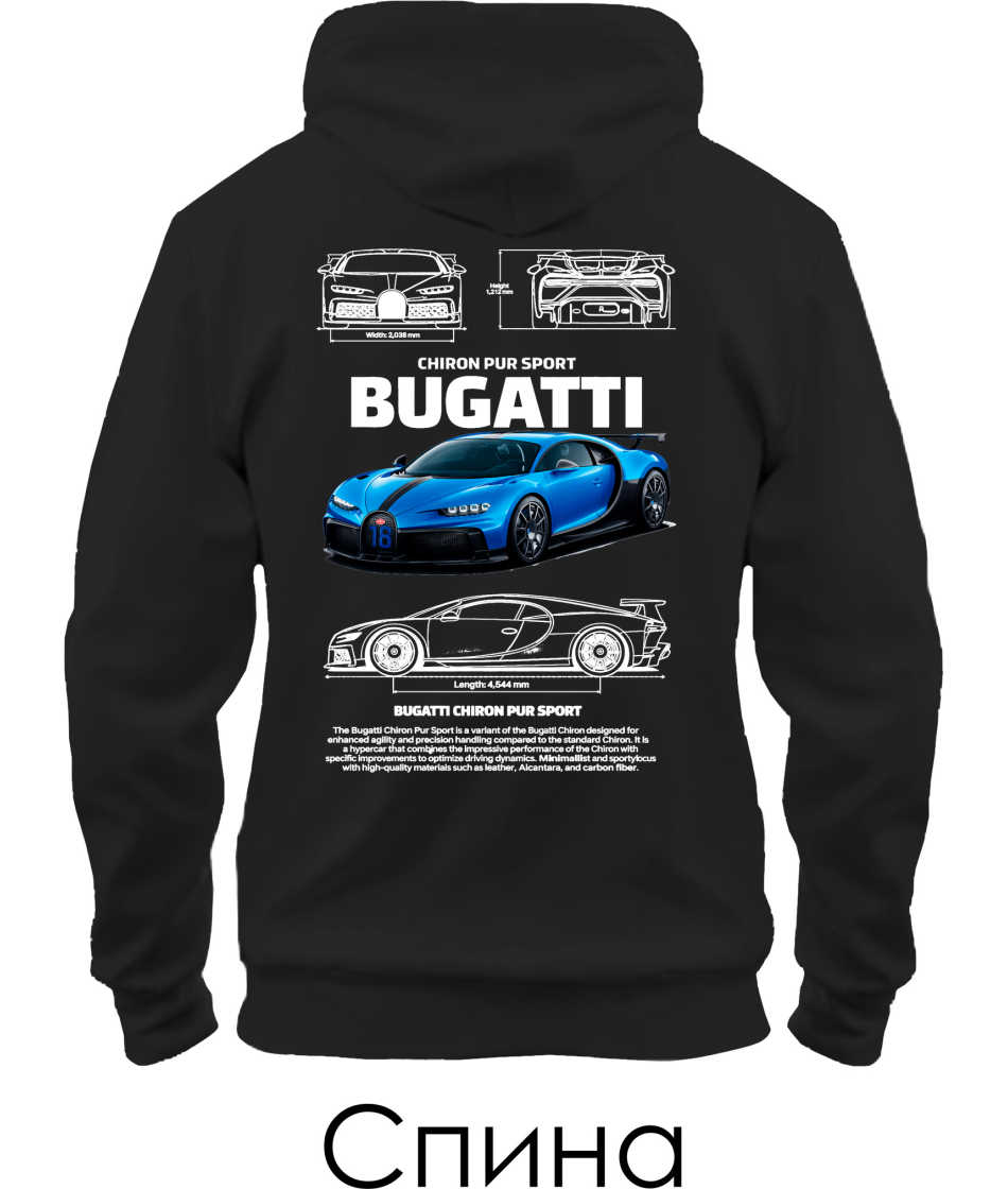 Толстовка-худи BUGATTI CHIRON Sketch (Спина)