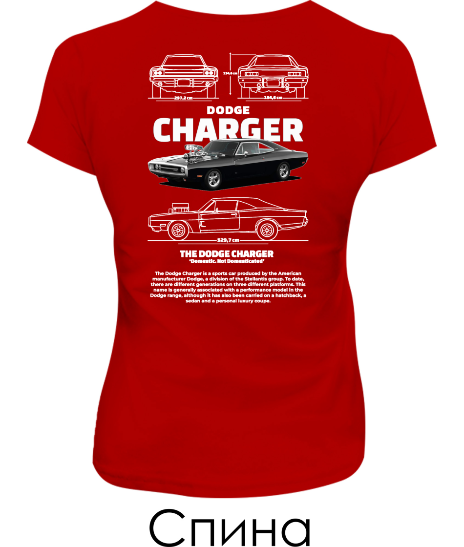 Женская футболка DODGE CHARGER Sketch (Спина)