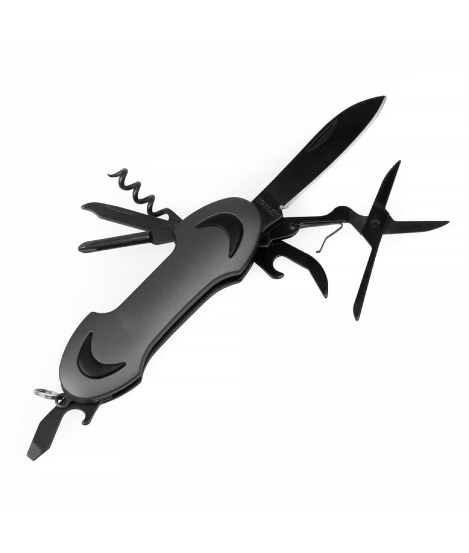 Мультитул на 7 функцій з фіксатором елементів, що відкриваються, упакованный в черной подарочной коробке.