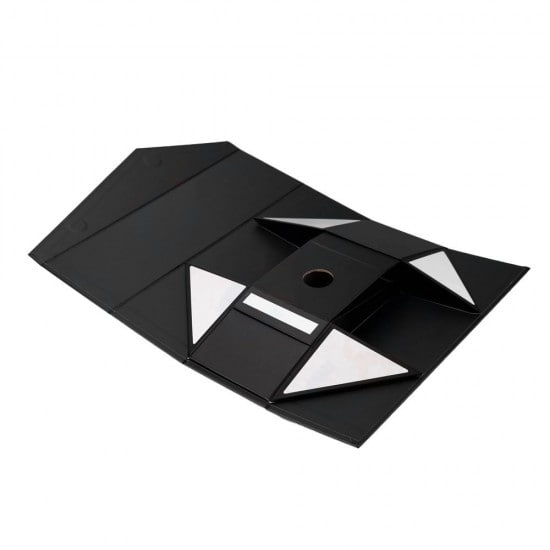 Коробка складена з твердого, переплетеного картону, вкрита дизайнерським фактурним папером. Кришка на магнітах.